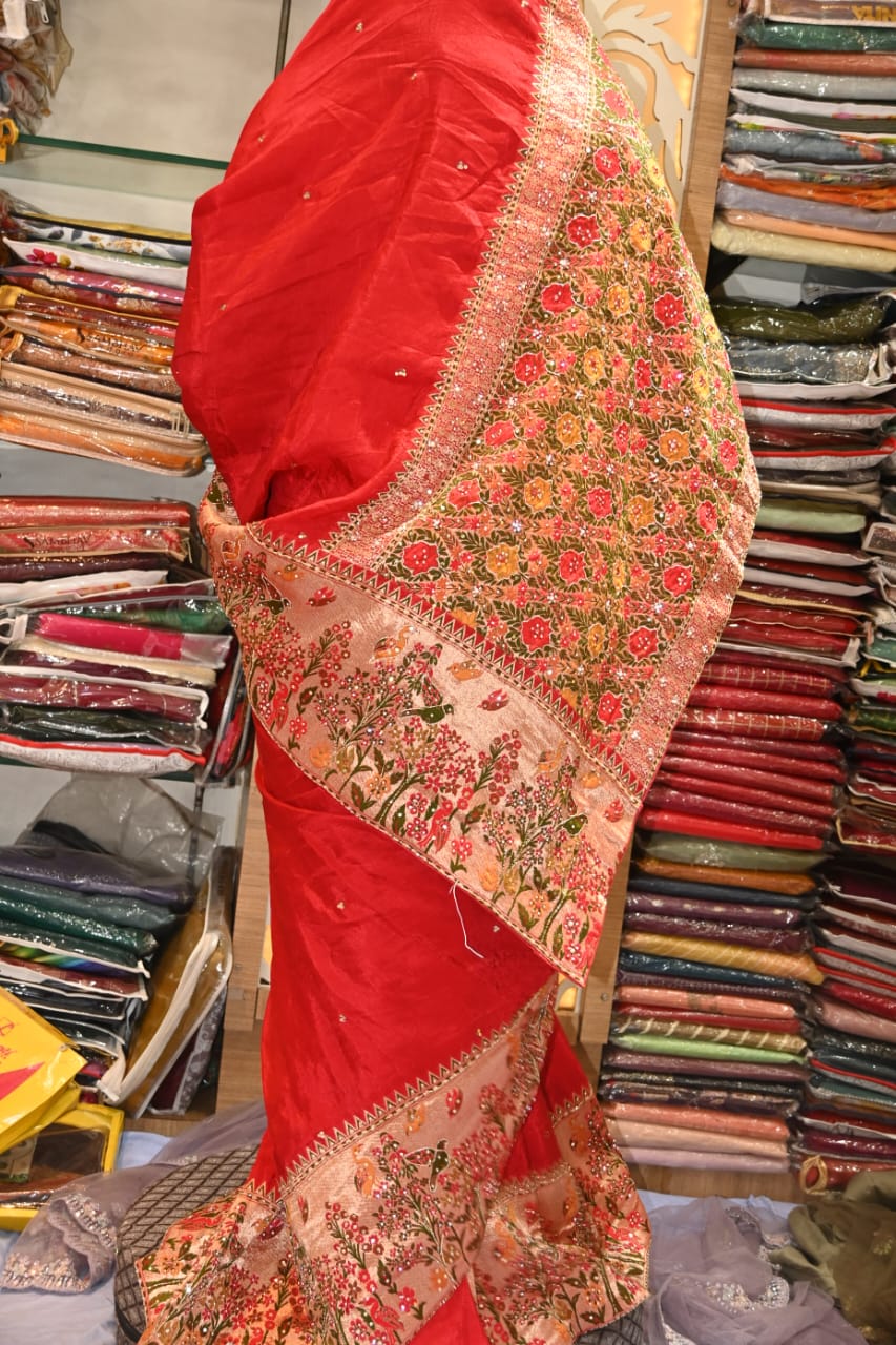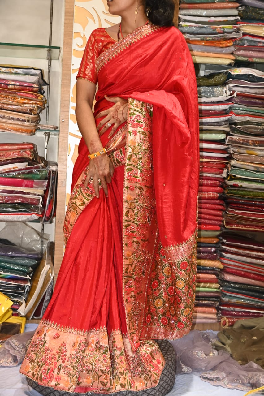 Firozi Dola Silk Saree with Zari Border and Blouse Piece – Elegant Festive & Wedding Wear for Women