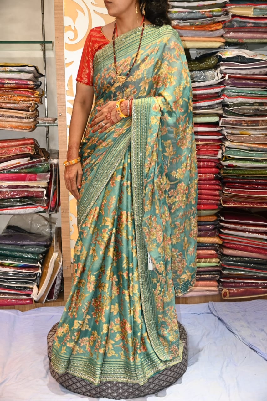 Firozi Dola Silk Saree with Zari Border and Blouse Piece – Elegant Festive & Wedding Wear for Women