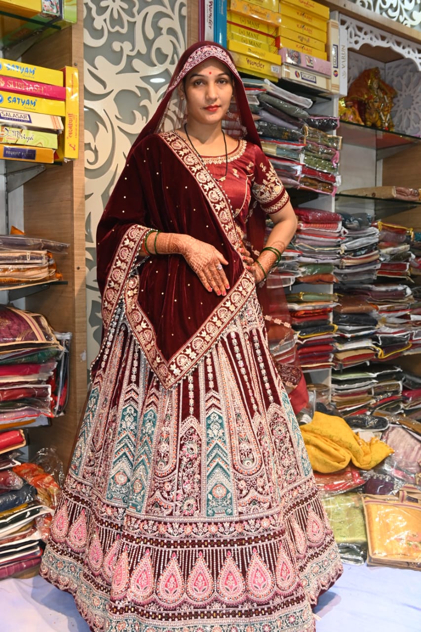 Bridal Maroon Velvet Lehenga Choli With Heavy Embroidery and Dupatta – Premium Quality Wedding Wear